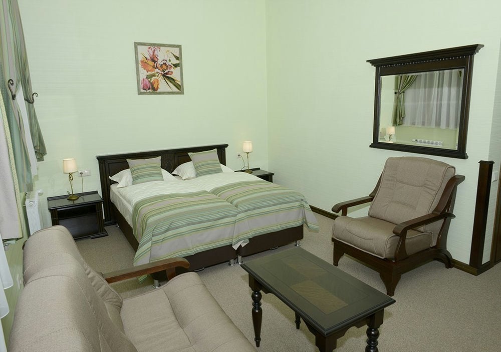 2-комнатный 2-местный (LUX): cпальное место king size (двуспальная кровать); LCD-телевизор; спутниковое телевидение; внутренний телефон; мини-бар (по запросу); комплексно оборудованная ванная; душевая кабина; фен; шампанское в подарок для молодоженов.