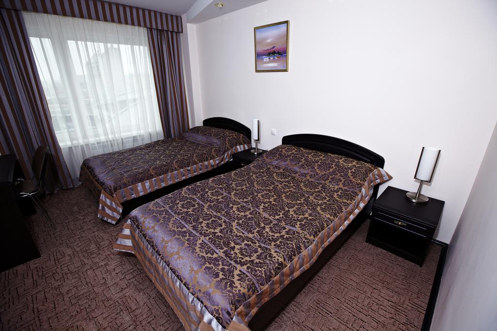 1-комнатный 2-местный (ТВИН СТАНДАРТ): две односпальные кровати (90х200 см или 120х200 см); тумба для чемодана; письменный стол; телевизор; телефон; спутниковое телевидение; мини-холодильник; фен (по запросу); Wi-Fi; душ/ванна; туалет; косметические и банные принадлежности.