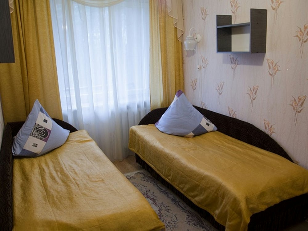 TWIN (корпус 1,3,4, с холодильником) -13,0 м2, две кровати, телевизор , тумба под ТВ, светильники, шкаф для одежды, вешалки, столик, зеркало, холодильник, стулья , 2 тумбочки.
