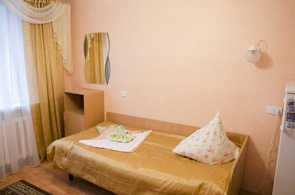 SGL (корпус 1, с холодильником) - 9,4 м2, тахта, холодильник,телевизор, тумба под ТВ, утюг, шкаф для одежды, вешалки, стол, стулья, зеркало, светильник, тумбочка