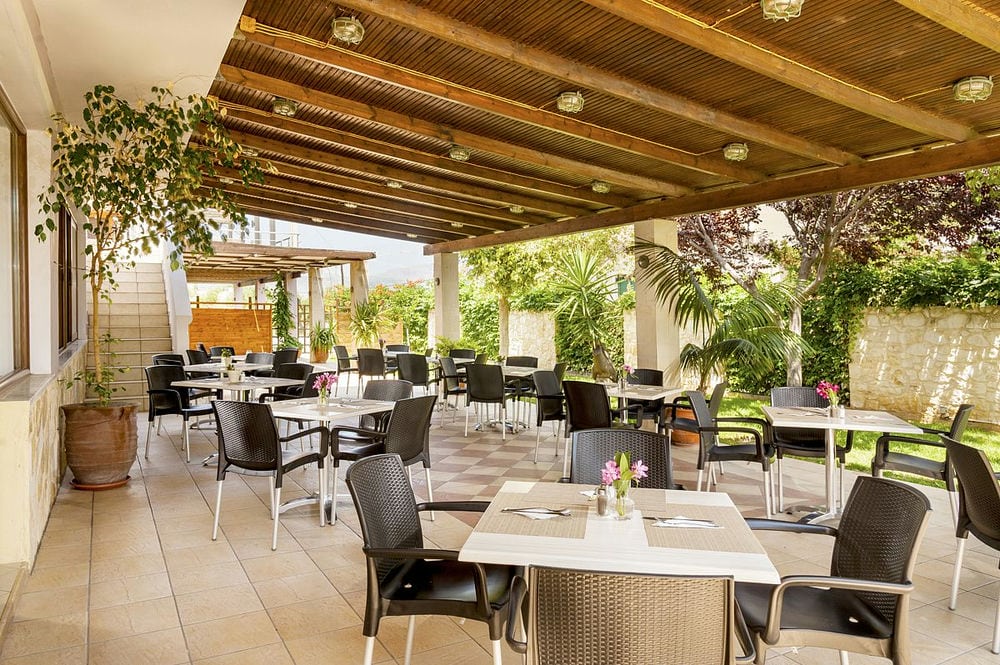 Современно оформленный ресторан предлагает разнообразный ассортимент греческих блюд, салатов, фруктов и сладостей в стиле «шведский стол». Каждое утро для гостей накрывается завтрак «шведский стол».