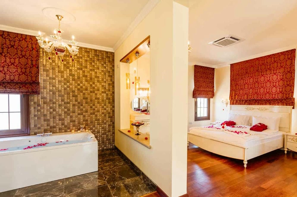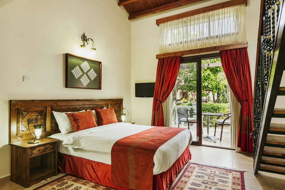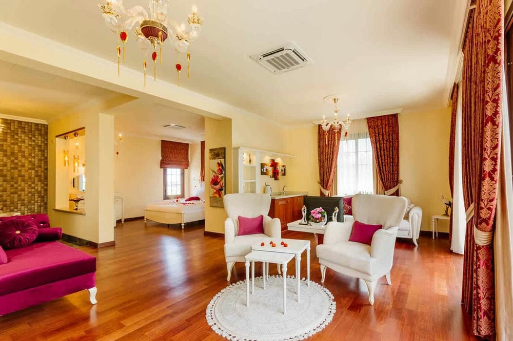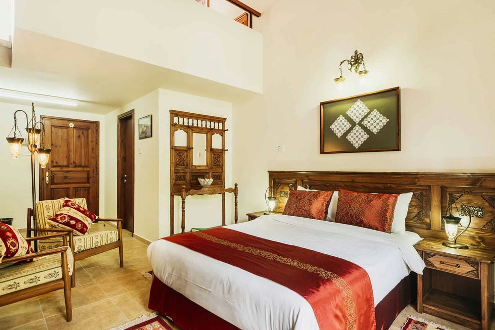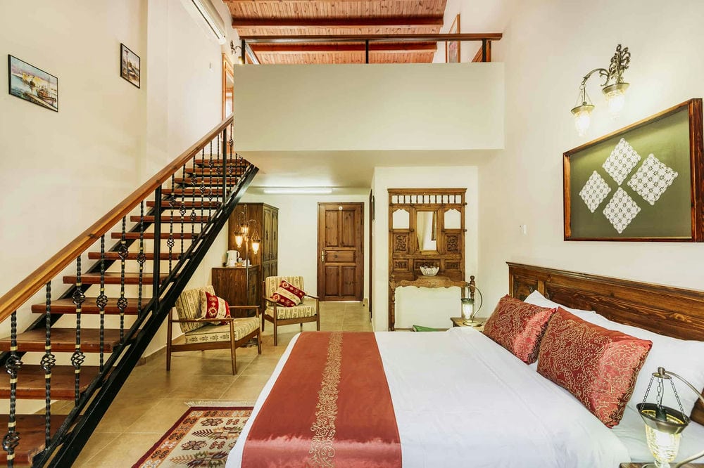 Каждая вилла имеет спальню на первом этаже двойной высоты, из которой открывается вид на спальню в мезонине. В них есть небольшой крытый гостиный уголок, а также просторная частная терраса с видом на прекрасно ухоженный бассейн и пышные сады, обеспечивающие огромное спокойствие, где вы можете побаловать себя обслуживанием номеров. Все они искусно оформлены в традиционном кипрском стиле с деревянными потолками, коваными и деревянными лестницами, а также современными удобствами. Картины местных художников и кружева ручной работы, выполненные владельцами, дополняют их уникальную атмосферу. Эти виллы спроектированы как наиболее подходящие для гостей с небольшими трудностями при ходьбе из-за спальни на первом этаже, а также для семей с маленькими или взрослыми детьми.