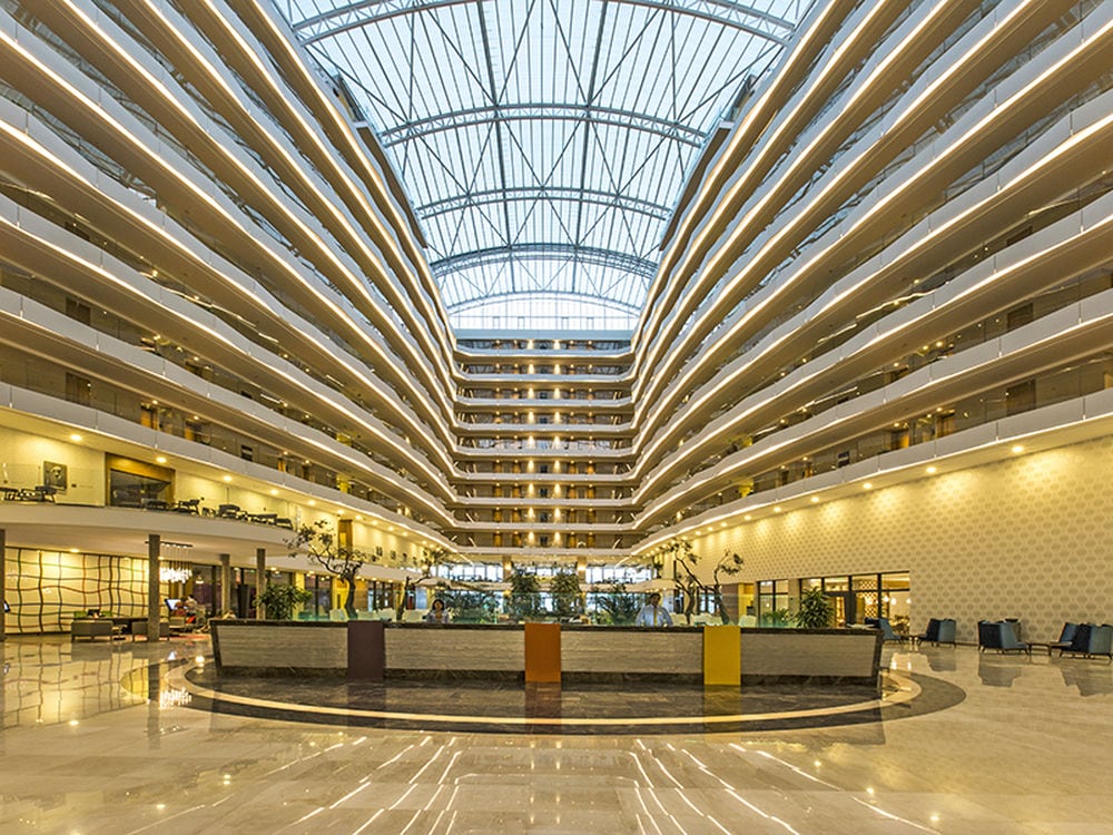 Отель состоит из 11-этажного основного здания, всего 392 номера: