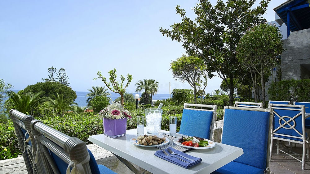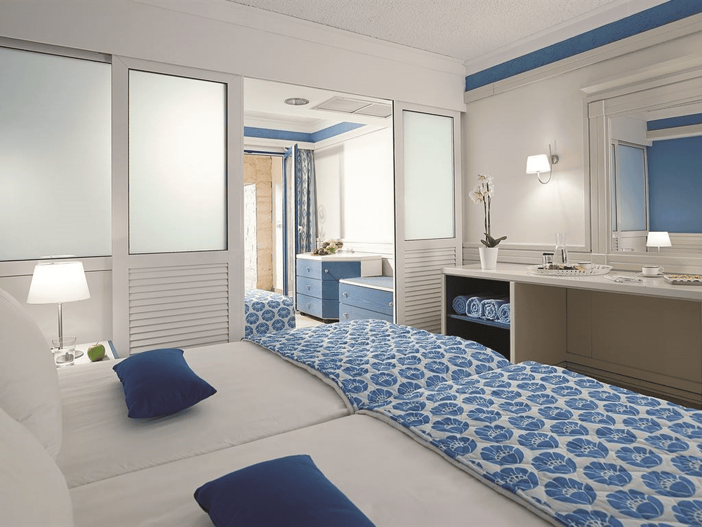 Suite Presidential B’ SV: вид на море, три спальни, гостиная/столовая/кабинет, две ванные комнаты, WC, электронный сейф (бесплатно), набор для приготовления кофе/чая. Вино, тапочки, халат, пляжные полотенца, фрукты, минеральная вода.