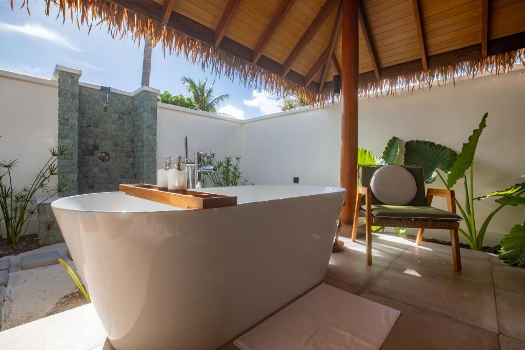 Sunrise Beach Villa (78 м², макс. 3 или 2+1 чел.). Береговые виллы с видом на восход. Спальня с кроватью king-size, небольшая зона отдыха. Ванная комната открытого типа с ванной и душем под открытым небом, закрытый душ. Терраса.