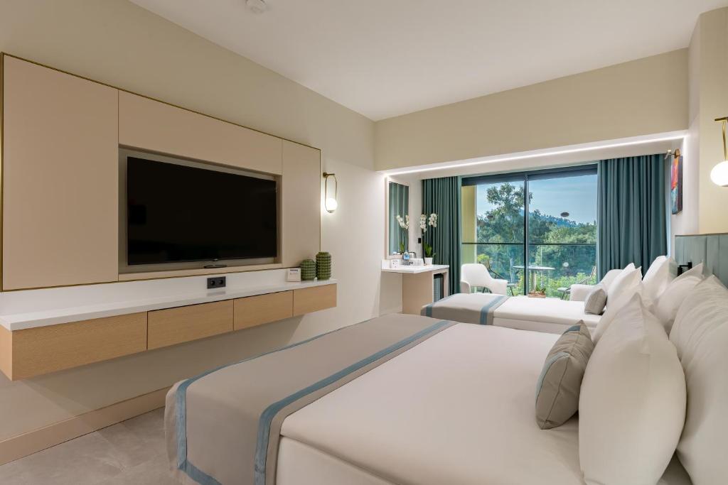 - 147 Deluxe Room (главное здание, вид на сад/горы/море, двуспальная кровать и 1 односпальная кровать, макс. 2+2 или 3 чел., 36 м²), есть 4 номера для людей с ограниченными возможностями;
