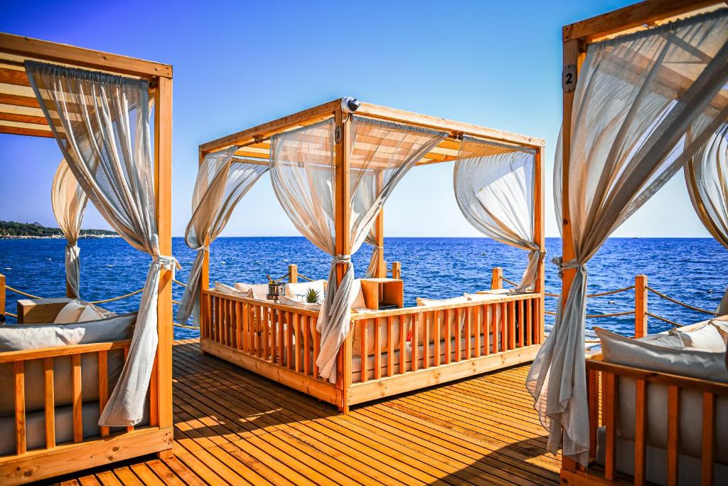 - у бассейнов бесплатно: полотенца, зонтики и шезлонги