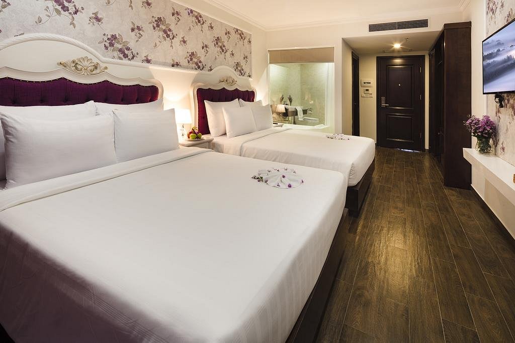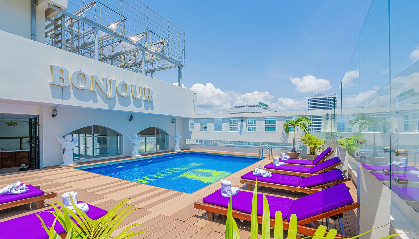 Добро пожаловать в 4-звездочный отель Bonjour Nha Trang, расположенный в живописном районе Nha Trang Beach и предлагающий захватывающие виды с крыши, где находится великолепный плавательный бассейн. Всего в 6 км от Парка развлечений Vinpearl Amusement Park, этот отель предоставляет своим гостям удобства, включая бесплатную частную парковку.