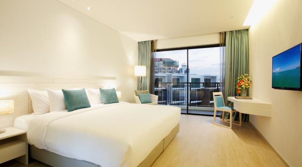 - Superior Room (34 кв.м., макс. 3/2+1 чел., спальня, кровать King-size или 2 односпальные кровати, ванная комната, балкон, вид на бассейн/сад)