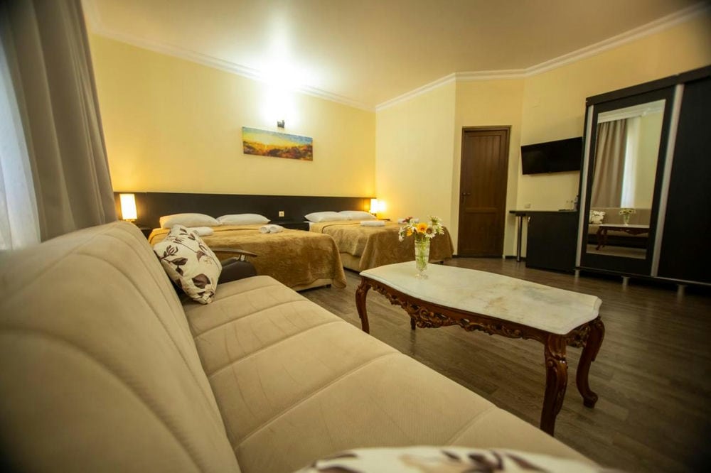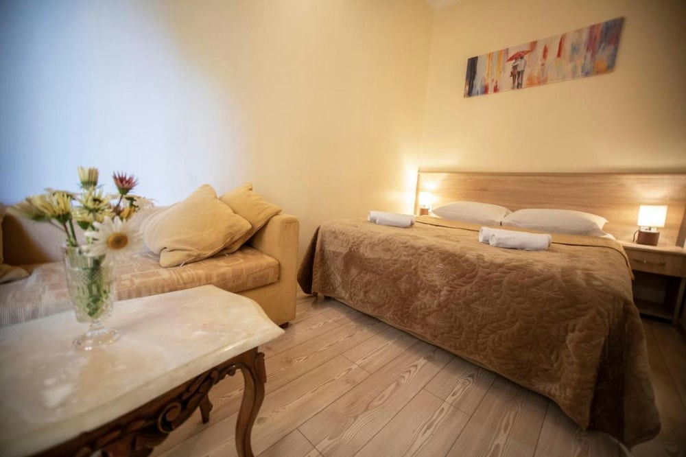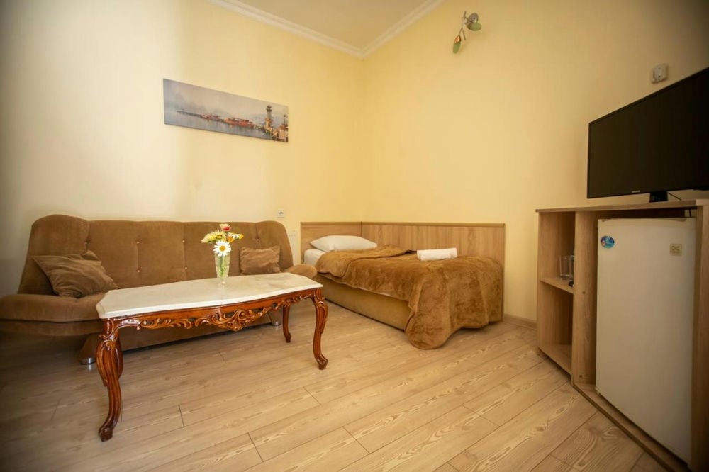 Семейный номер (32 м², балкон, спальня и гостиная разделены аркой, 3 односпальные кровати, 1 диван-кровать, макс. 4+1 чел.);