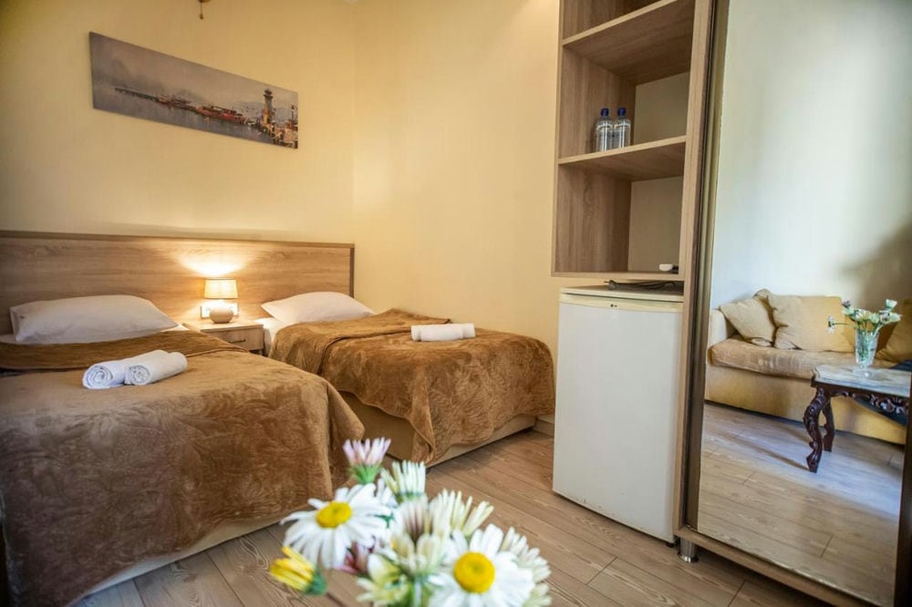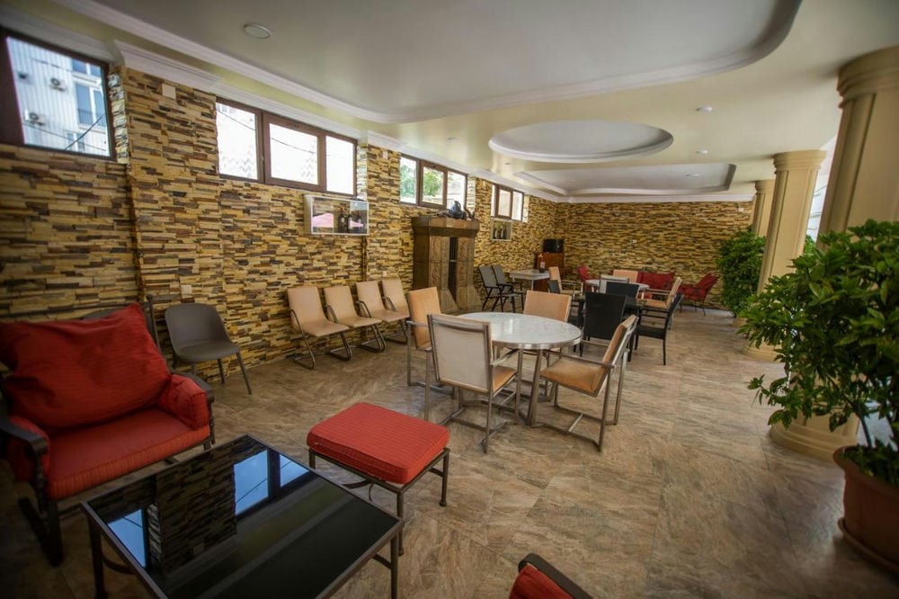 Hotel Chveni Ezo 3* – семейный отель, расположенный на первой береговой линии Черного моря, в центре курортного города Кобулети. Для комфортабельного отдыха территория отеля оснащена бассейном с зоной для детей, живописным садом с водопадом, детской игровой площадкой и кафе, где можно насладиться настоящей грузинской кухней. Отель Chveni Ezo расположен в 700 метрах от центрального парка Кобулети, где можно отдохнуть и поиграть в футбол. Расстояние от отеля Chveni Ezo до железнодорожного вокзала Кобулети составляет 7 км, а до аэропорта Батуми — 30 км. На территории отеля предоставляется бесплатная частная парковка. За дополнительную плату для гостей организуют трансфер от/до аэропорта.