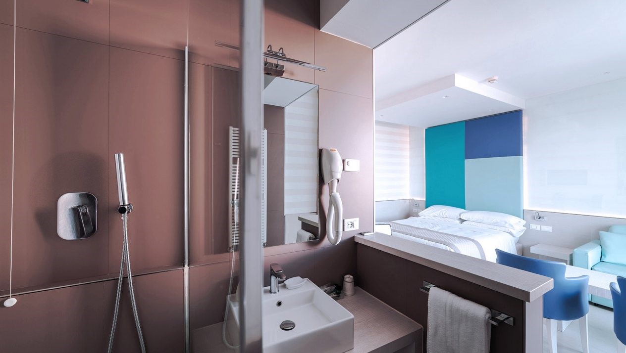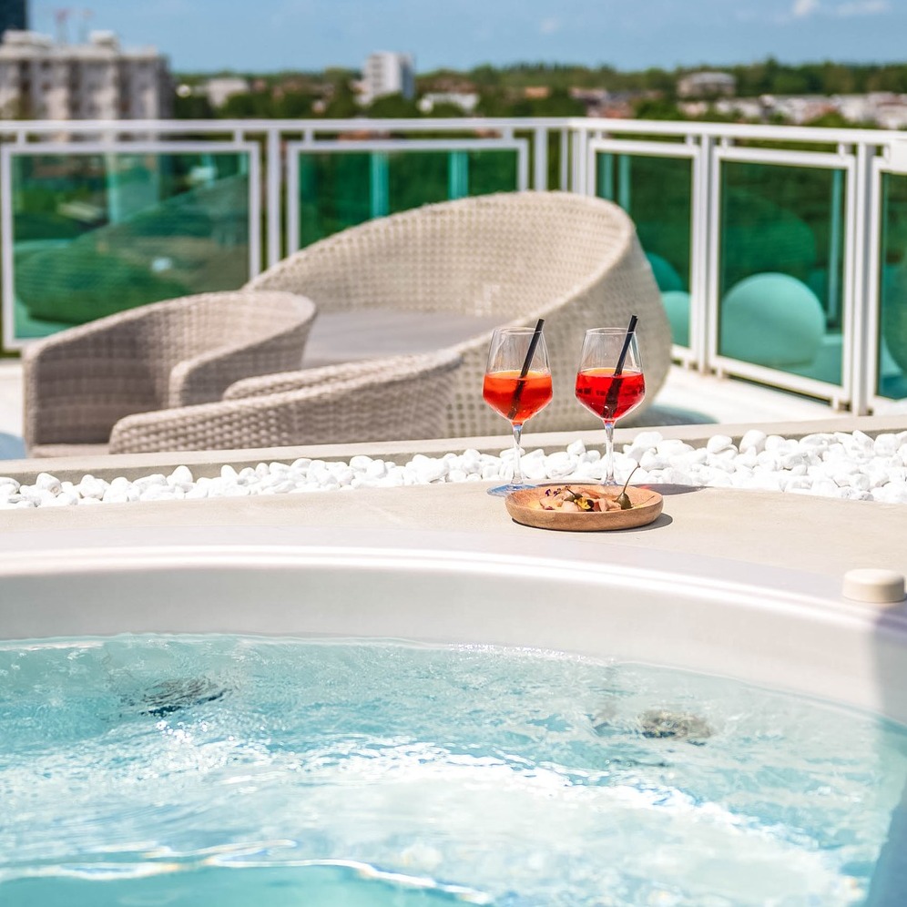 Отель Colombo в Лидо-ди-Йезоло (4-звезды) расположен в центре города, всего в двух шагах от пляжа. Отремонтированные номера, панорамная терраса с частными бассейнами для взрослых и детей, джакузи, а также прекрасный спа-центр. В спа - центре - сауна, паровая баня, дорожка Кнайпа и особый душ (за дополнительную плату). Бассейн на панорамной террасе на крыше оснащен зонтиками и шезлонгами (бесплатно), есть также детская зона. На частном пляже отеля установлены шезлонги и зонтики, которыми гости могут пользоваться также бесплатно.