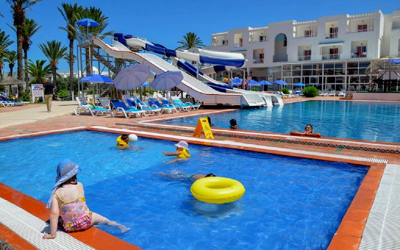 На территории отеля три бассейна: открытый бассейн с пресной водой и с водными горками, детский бассейн и крытый бассейн с пресной водой