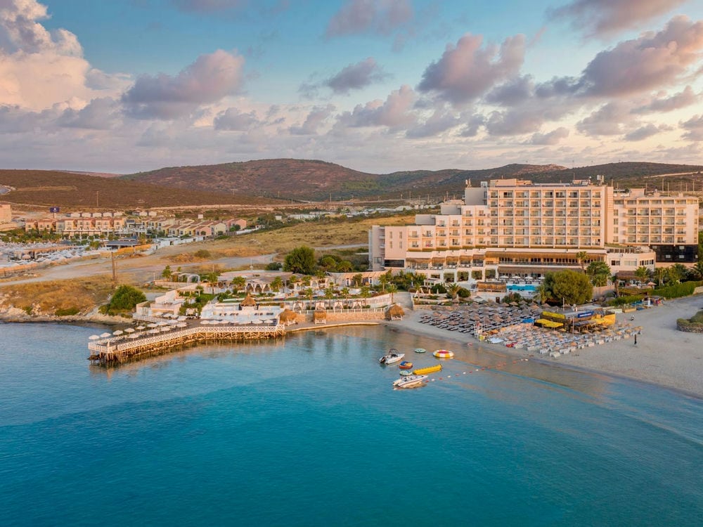 Бирюзовое море, спокойное и нетронутое, обрамленное невысокими парящими над землей горами, приветствует вас в отеле Design Plus Seya Beach в Алачаты, убежище, расположенном на берегу моря, защищенном мягкими силуэтами склонов, с традиционными ветряными мельницами украшающими горизонт.