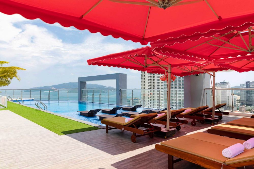 DQua Hotel — это пятизвёздочный отель, расположенный в городе Нячанг. Гости могут воспользоваться открытым бассейном, фитнес-центром, садом и террасой. Для удобства доступны услуги доставки еды и напитков, а также консьерж-сервис. Круглосуточная стойка регистрации, трансфер до аэропорта, детский клуб и бесплатный Wi-Fi обеспечивают комфортное пребывание.