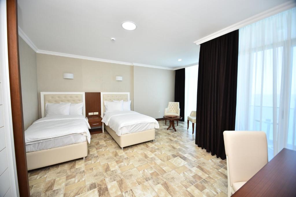 - изысканные двухместные Superior номера с 2 односпальными кроватями в спальной комнате и видом на море;