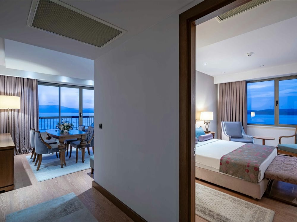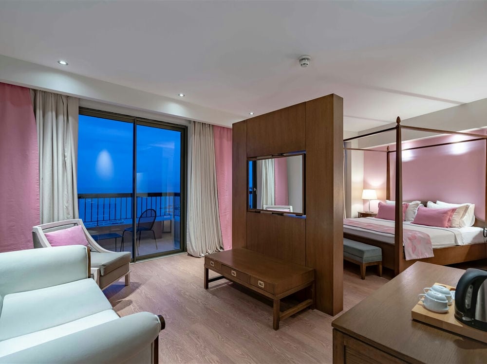 Superior Club Suite. Общая площадь номера 67-69m2. Максимальное размещение - 3+1. (3 двухместные виллы расположены отдельно в большом саду Euphoria Aegean, каждая из которых имеет всего 2 люкса. Во всех люксах есть французская кровать в спальне и 1 гостиная с мебелью.)