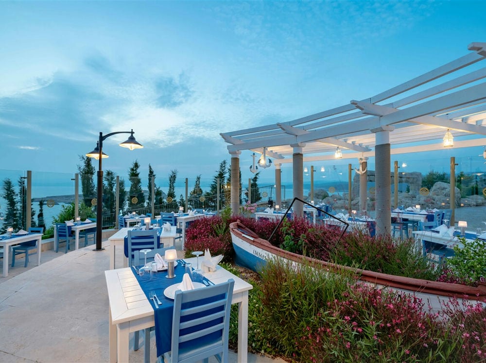 - главный ресторан "Rainbow" предлагает блюда местной и международной кухни- ресторан "Table Magic" предлагает блюда азиатской кухни- ресторан "Ottoman" предлагает блюда Турецко-Османской кухни- ресторан "Deep Blue" предлагает вкус особых блюд Эгейской кухни, котоые приготовены из морепродуктов- ресторан "La Grappa" предлагает различные виды блюд мировой итальянской кухни- бар