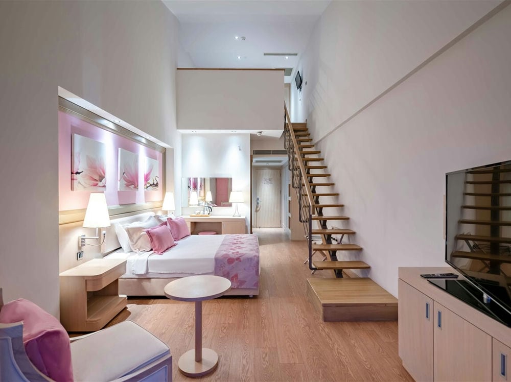 Family Dublex Suite. Общая площадь номера 39-46m2. Максимальное размещение - 5ADL. (Во всех номерах на первом этаже французская кровать, на втором этаже две отдельные кровати)