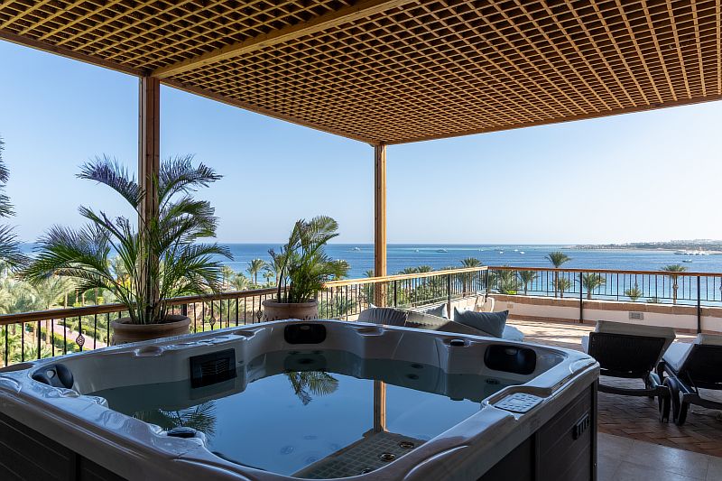 The Presidential Suite ( люкс 114 м², расположенный на верхнем этаже с выделенной гостиной, а также с частной террасой с панорамным видом, для пары «только для взрослых» по тарифу «Премиум все включено»)