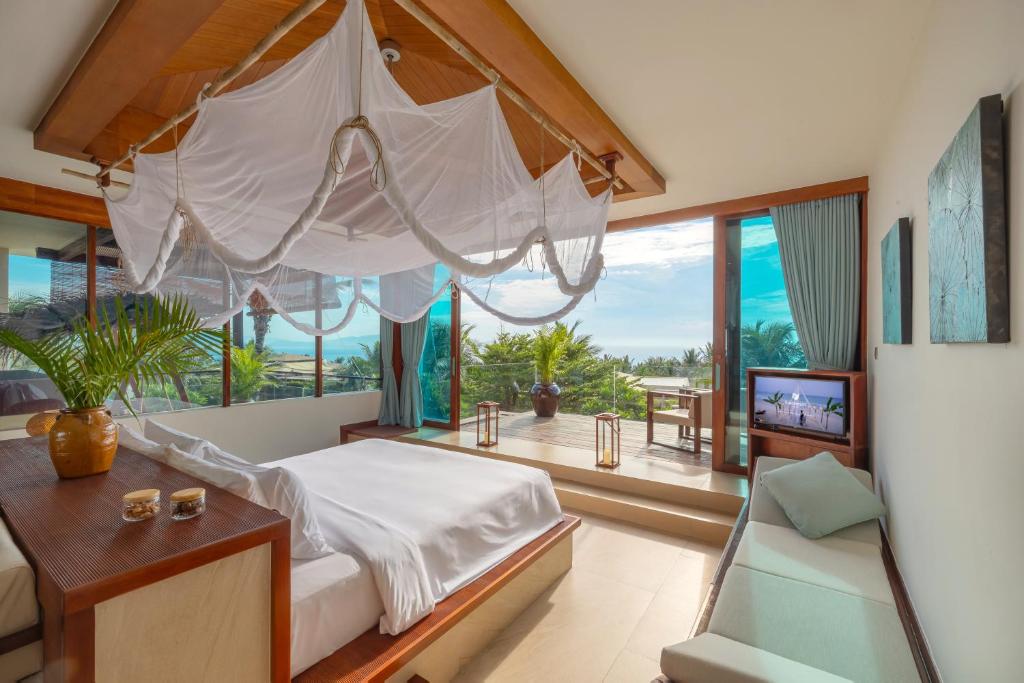 Номера и виллы — просторные, выполнены в стиле tropical chic. Доступны варианты с видом на океан, сад или частный бассейн. Некоторые категории рассчитаны на семьи с детьми или большие компании. В каждом номере: