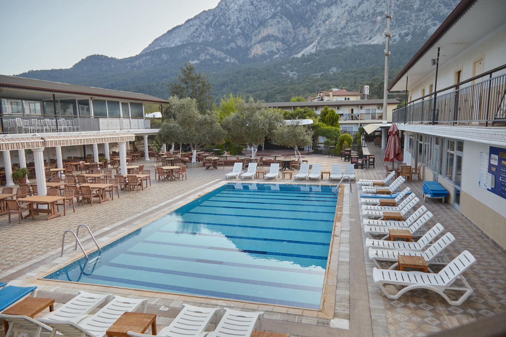 На территории есть открытый бассейн и водные горки.