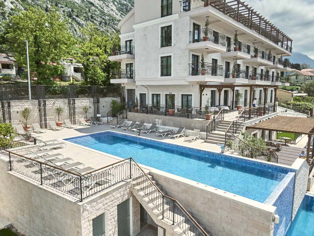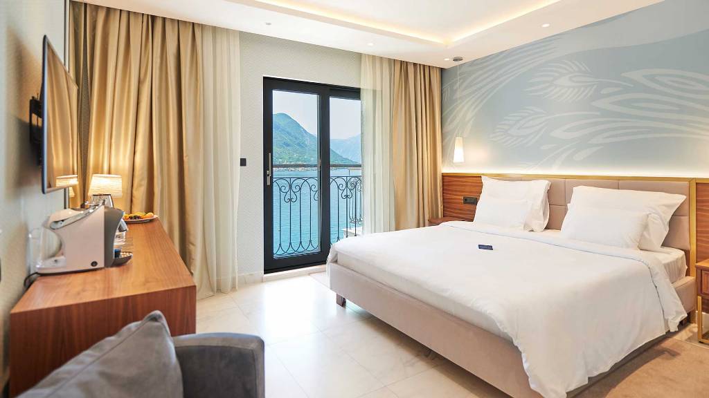 Dobrota Suite (35-38 м², терраса 7 м², гостиная зона и спальня с двуспальной кроватью; макс. 3 чел.)