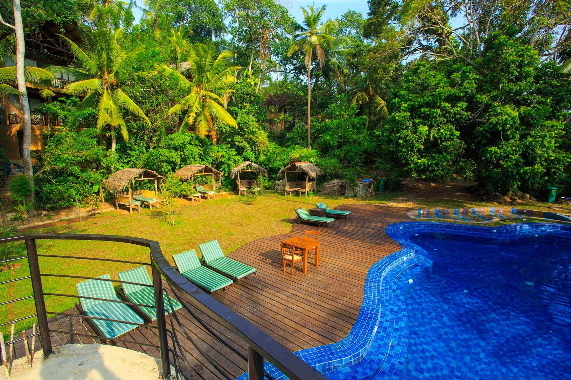 Номер: 45 кв. м, спальня, двуспальная кровать/ 2 односпальные кровати, ванная комната, балкон, вид на джунгли и бассейн.