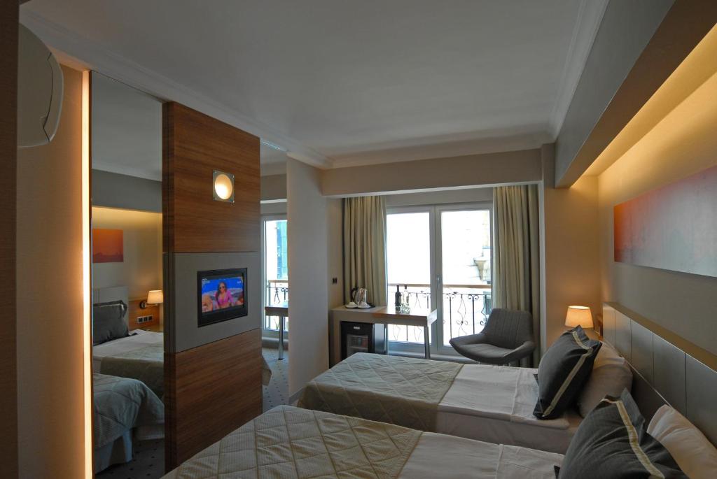 Этот современный отель расположен рядом с главным кампусом Стамбульского университета. К услугам гостей стильные номера с ЖК-телевизором со спутниковыми каналами. Гости могут бесплатно пользоваться сауной и сезонным бассейном на крыше. Всего в 200 метрах находится станция метро Vezneciler, откуда можно легко добраться до различных достопримечательностей города, в том числе площади Таксим и улицы Истикляль. Номера отеля Klas оформлены в светлых тонах и располагают бесплатным Wi-Fi, мини-баром и принадлежностями для чая/кофе. В современной собственной ванной комнате установлен душ. По утрам для гостей накрывают разнообразный завтрак «шведский стол». В ресторане Tulipa готовят блюда турецкой и интернациональной кухни. В баре на террасе у бассейна в течение всего дня можно заказать напитки и закуски. Отель Klas находится в 15 минутах ходьбы от Большого базара. Прогулка до трамвайной остановки Laleli-Üniversite займет 3 минуты. Отсюда можно за 5 минут доехать до Голубой мечети, собора Святой Софии и дворца Топкапы. Станция метро Vezneciler соединена с железной дорогой Marmaray, ведущей в азиатскую часть города. Расстояние от аэропорта имени Ататюрка составляет 18 км, а до аэропорта Стамбул — 49 км.