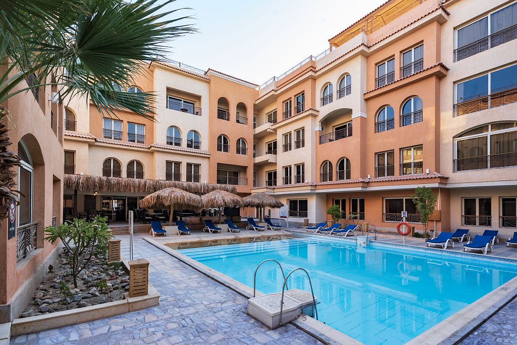 Отель в стиле Plaza расположен в конце знаменитой Эспланады Хургады, с видом на теплое открытое Красное море, с уникальным расстоянием в 5 км от международного аэропорта Хургады, в 8 км от центра города Шератон-роуд и в 10 км от старого города Дахар. В отеле 4 этажа и 2 лифта.Есть Конференц-залы и 4 бассейна, а также бесплатный аквапарк. Все номера оборудованы ванной комнатой с душем, спутниковым телевидением, мини-холодильником, феном, сейфом и кондиционером. В каждом номере есть терраса или французский балкон, а в улучшенных номерах и люксах есть джакузи. Питание "все включено". На территории отеля есть детскиий клуб и различные анимационные программы.