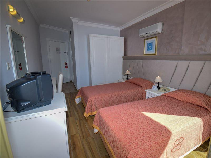 К услугам гостей номера с кондиционером, спутниковым телевидением и балконом. В каждом номере отеля Marbas установлен холодильник. В стандартную комплектацию входит собственная ванная комната с феном. Из некоторых номеров открывается панорамный вид на море. Ежедневный завтрак подается в форме «шведского стола». В ресторане, работающем по системе «шведский стол», подают традиционные и интернациональные блюда, в том числе мясо на гриле, а из окон открывается панорамный вид на море. Вы также можете насладиться различными напитками и напитками в баре Liberty.