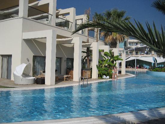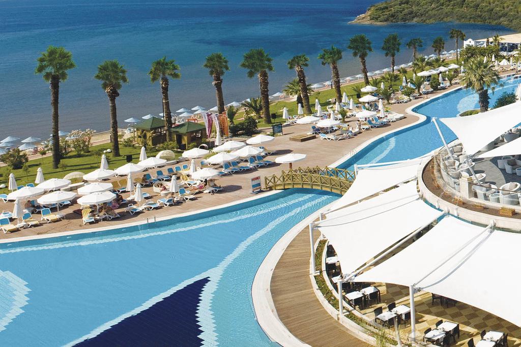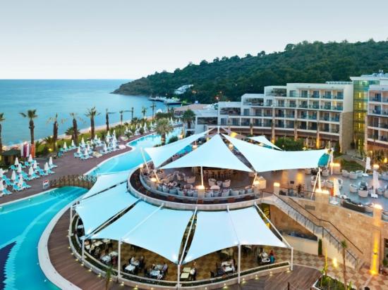 Ближайший населенный пункт, поселок Оздере, находится в 1 км. от отеля. Общая площадь территории отеля 38 000 м.кв. Один четырехэтажный корпус. Номерной фонд составляет 268 номеров. Территория с бассейнами и красивыми постройками гармонично сочетается с необычайно яркими и живыми пейзажами Эгейского побережья. Идеально подходит как для пар, так и для тех, кто привык отдыхать в одиночестве.