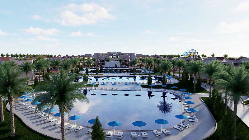 614 просторных номеров с потрясающим видом на море, 15 бассейнов, омолаживающий спа-салон и теннисные корты.