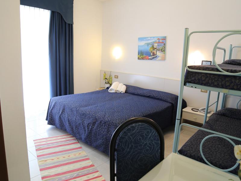 - Семейный номер (18 кв.м.) - до 4 чел. Отдельная ванная комната с душевой кабиной, феном, телефоном, телевизором, Wi-Fi, сейфом и кондиционером.