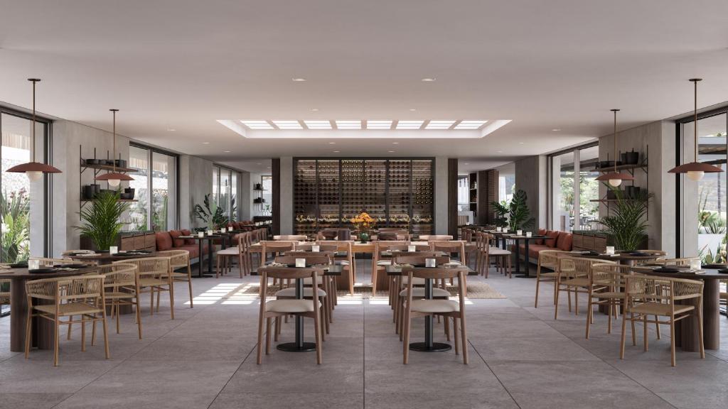 Бар Materia Pool Bar. Расслабленное и непринужденное пространство с отличными коктейлями и вкусными и креативными закусками, которыми можно насладиться в освежающей атмосфере бассейна. Обед в течение всего дня, излучающий энергию и свежесть, также доступен в гамаке.