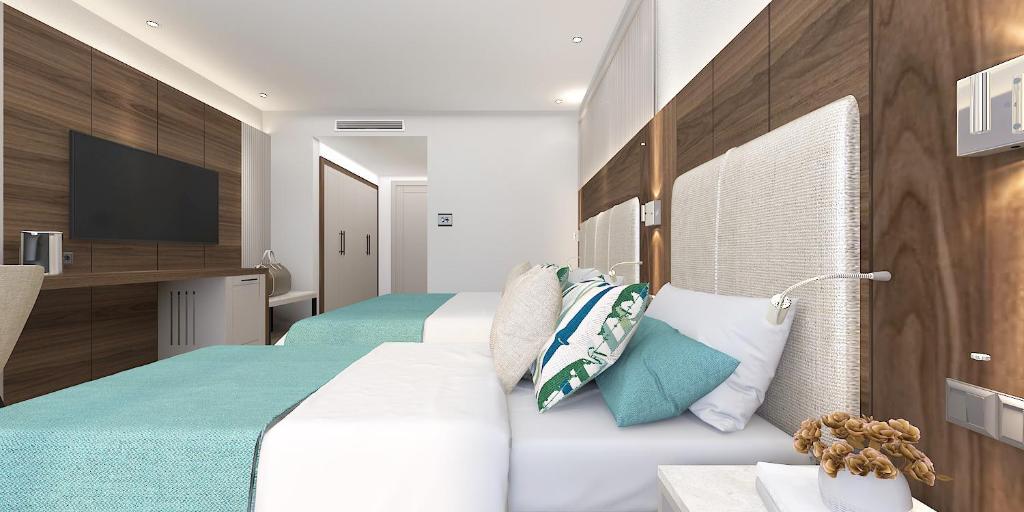 15 однокомнатных Swim-Up room (шезлонги на терассе, прямой выход к бассейну, в начале и конце сезона бассейн с подогревом, макс 2+2 чел., 31-33 м2).