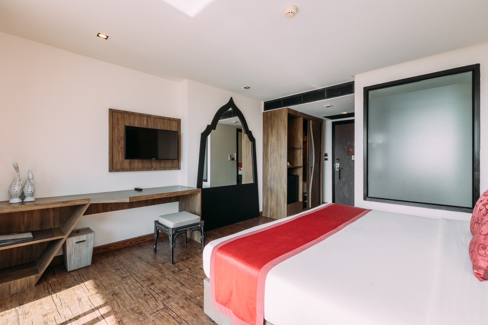 - Deluxe Room (30 кв.м., спальня, двуспальная или 2 односпальные кровати, ванная комната, балкон, вид на город/бассейн)