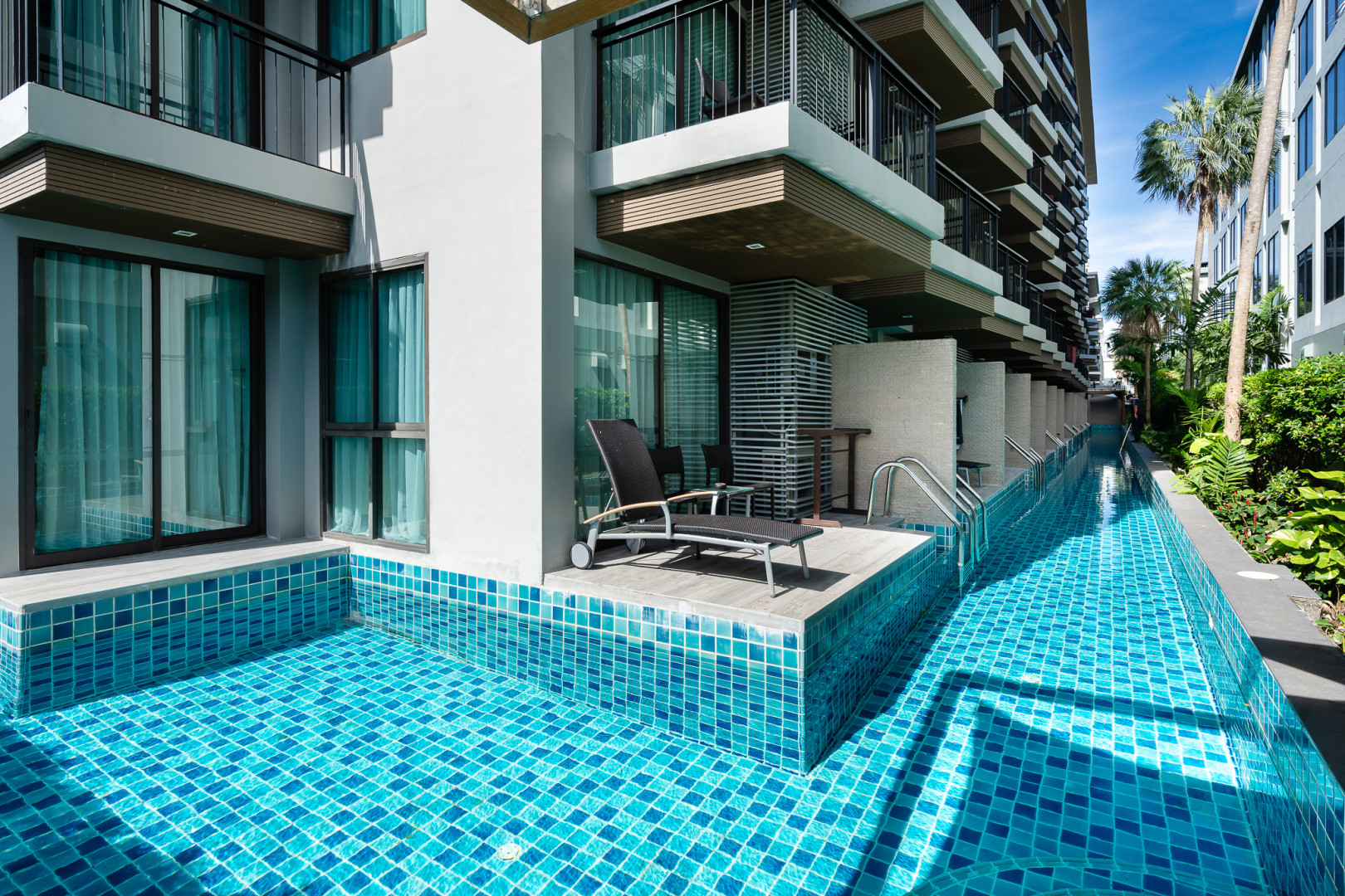 - Deluxe Pool Access (40-45 кв.м., 1-й этаж, спальня, кровать King-size + диван, ванная комната, терраса, вид на бассейн, прямой выход к бассейну)