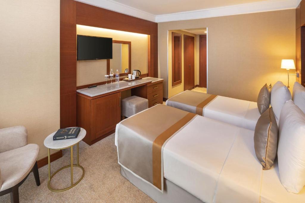 Отель Vicenza с современными номерами расположен самом в сердце Стамбула, всего в нескольких шагах от станции метро Vezneciler. К услугам гостей бассейн на крыше с панорамным видом на исторический центр города, а также крытый бассейн и купель с холодной водой. Номера отеля Vicenza оформлены в современном стиле и обставлены деревянной мебелью. В числе удобств — кондиционер, мини-бар и телевизор с плоским экраном и спутниковыми каналами. Кроме того, гостям каждого номера предоставляются бесплатные принадлежности для чая/кофе. В ресторане Venezia с обслуживанием по меню предлагают блюда турецкой и итальянской кухни, а также блюда из свежих морепродуктов. В кафе-баре Vittoria подают легкие блюда, закуски и напитки. К услугам гостей оздоровительный центр Alpheus с сауной и турецкой баней. Желающие могут заказать сеанс расслабляющего массажа. Отель находится в 1,3 км от Гранд-базара и в 5 минутах ходьбы от трамвайной остановки Laleli, откуда можно без труда добраться до других районов города. Расстояние от аэропорта имени Ататюрка составляет 15 км, а до аэропорта Стамбул — 45 км.