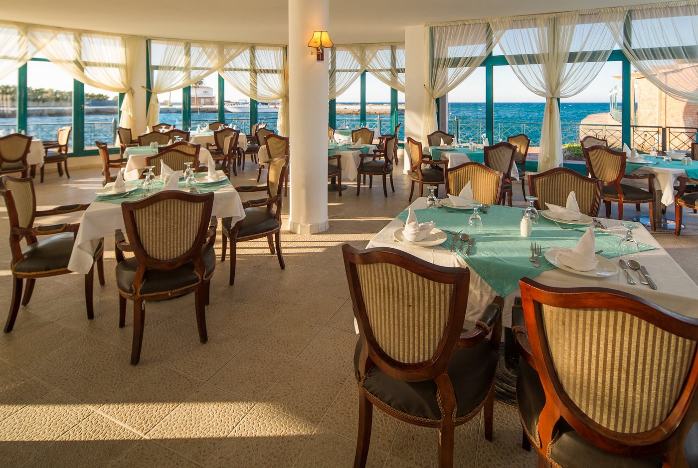 - Главный ресторан The Eatery — ресторан «все включено», расположенный на первом этаже здания. Завтрак с 7:00 до 10:00. Алкоголь не подается.Обед с 12:30 до 14:30. Ужин с 18:30 до 21:30. Все напитки (горячие, холодные, безалкогольные и местные алкогольные напитки) включены в систему «все включено». Импортные алкогольные напитки, а также эспрессо, кофе по-турецки, кофе по-ирландски – подаются за дополнительную плату.