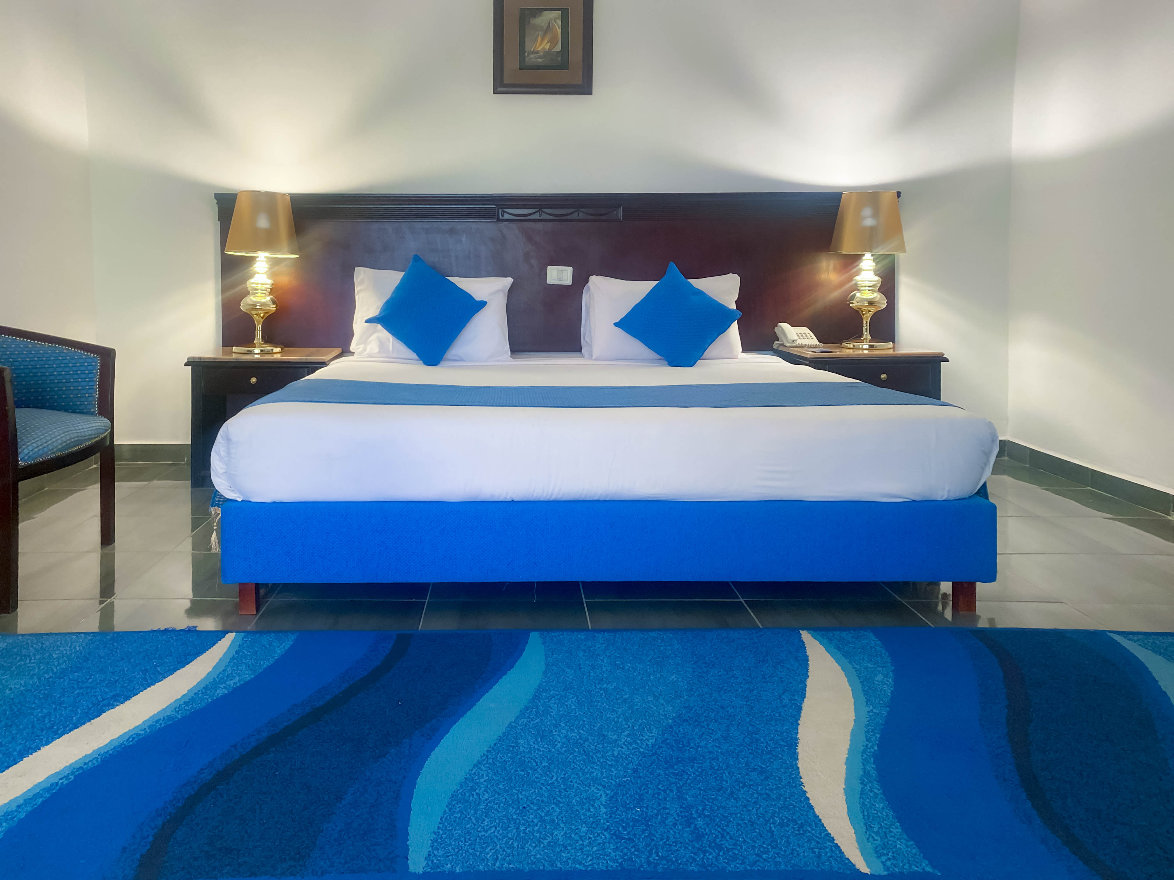 - Люкс - Одна спальня с двуспальной кроватью и еще одна комната со столиком, ванной, балконом (70 м2).
