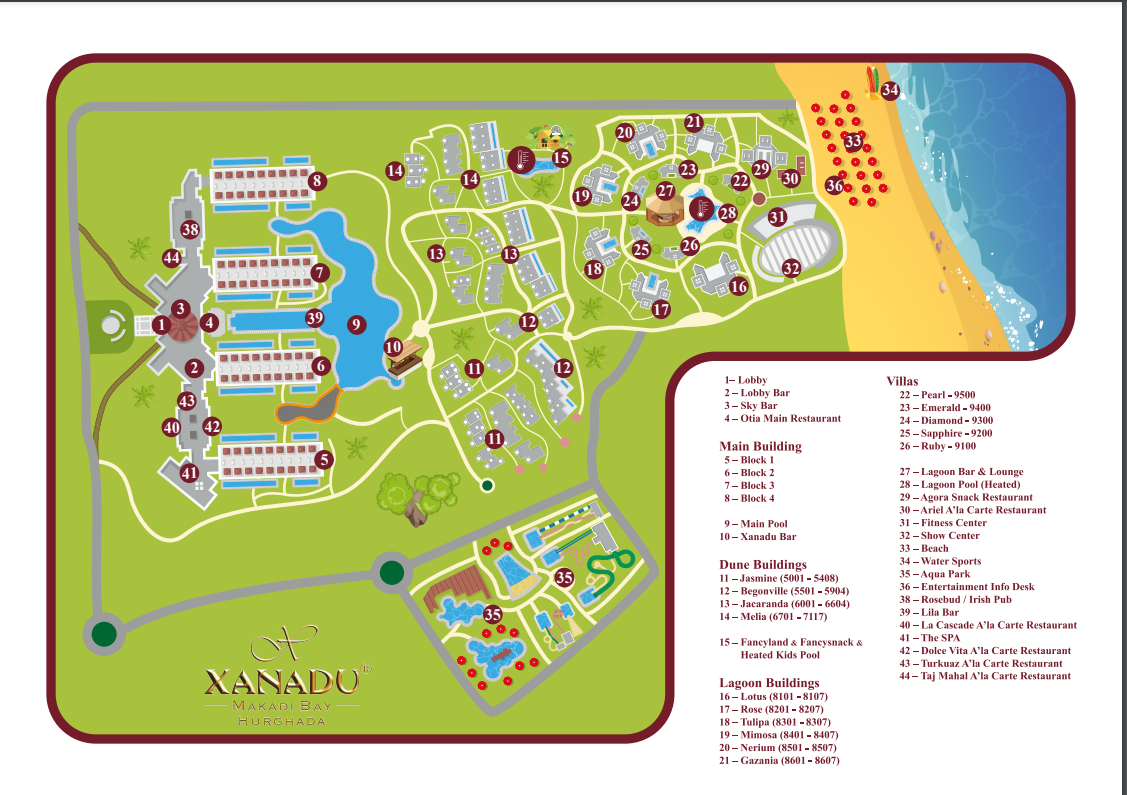 Xanadu Makadi Bay расположен в Хургаде, прямо на берегу Красного моря и в непосредственной близости от бесчисленных исторических и туристических достопримечательностей. На общей площади 500 000 квадратных метров отель предлагает гостям со всего мира обслуживание высокого класса по системе «все включено» и сочетает комфорт с роскошью для незабываемого отдыха.