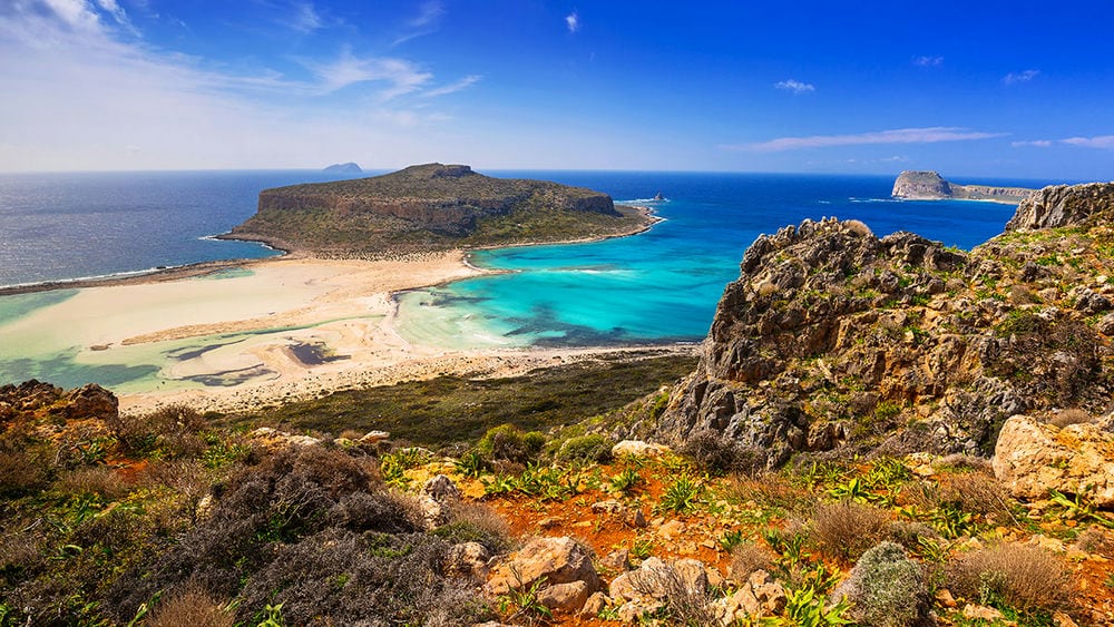 - 1. Знаменитые пляжи. Самый красивый из них - лагуна Балос. Здесь сходятся три моря, поэтому местные виды украшают не только фотографии всех туристов мира, но и половину сувенирных магнитов из Греции. Ждать с моря погоды вам точно не придется, ведь температура воздуха выше +20 ºС На Крите держится больше восьми месяцев в году.