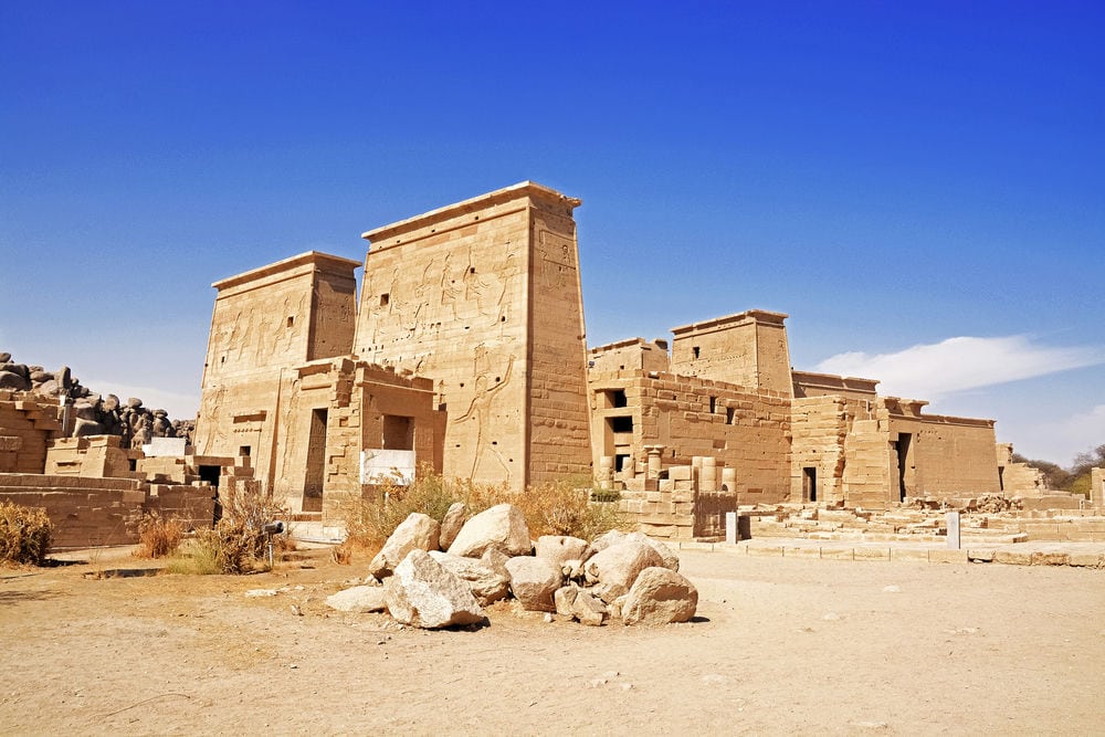 Храмовый комплекс на острове Филе — один из трех, вместе с Эдфу и Дендера, наиболее сохранившихся архитектурных сооружений времен Птолемеев. По верованиям египтян Филе был местом вечного сна бога Озириса. Лишь жрецы совершали здесь священные ритуалы на 360 столах с дарами Озирису. Храм Исиды был построен около 350 г. до н.э. как главное культовое сооружение. Исида – супруга бога Осириса, которая силой своей любви воссоединила рассеянные по земле части тела супруга и воскресила его. Постройка новой Большой Асуанской плотины создавала для Филе тяжелую проблему: священный остров должен быть включен в затопляемую зону. Поэтому в 1972-80 гг. храмы были разобраны и вновь собраны на островке Аджилкия (где была точно воссоздана топография Филе).